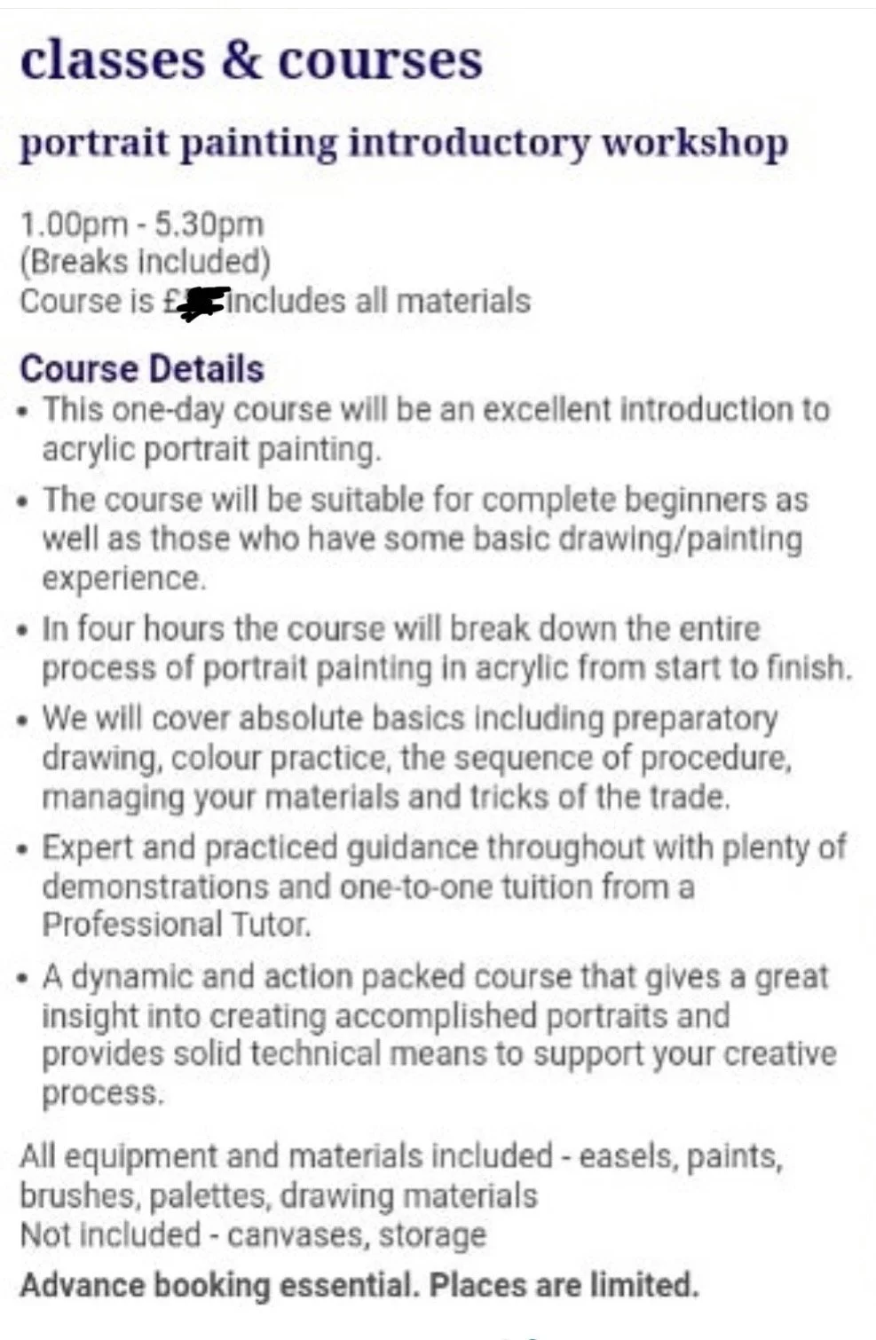 Art events, drawing, painting or mixed media, take many forms, but I can supply the complete package and supply all the logistics.